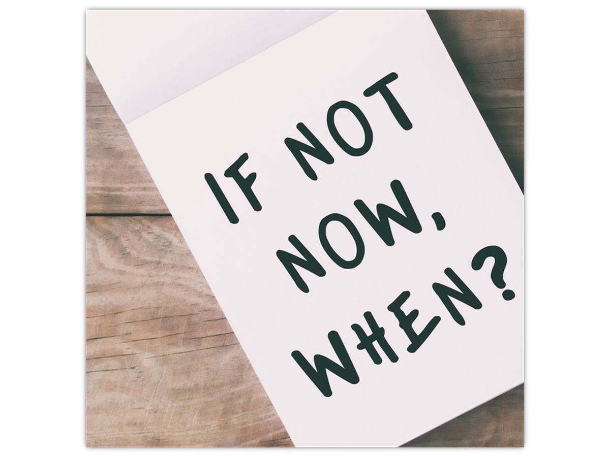 Glasschilderij - Als het niet nu is, wanneer dan wel?