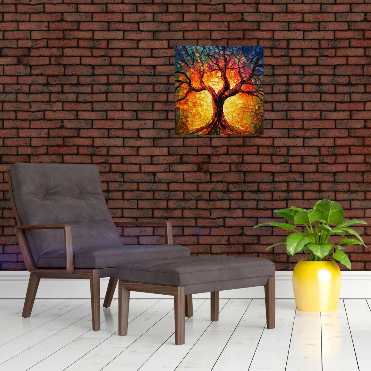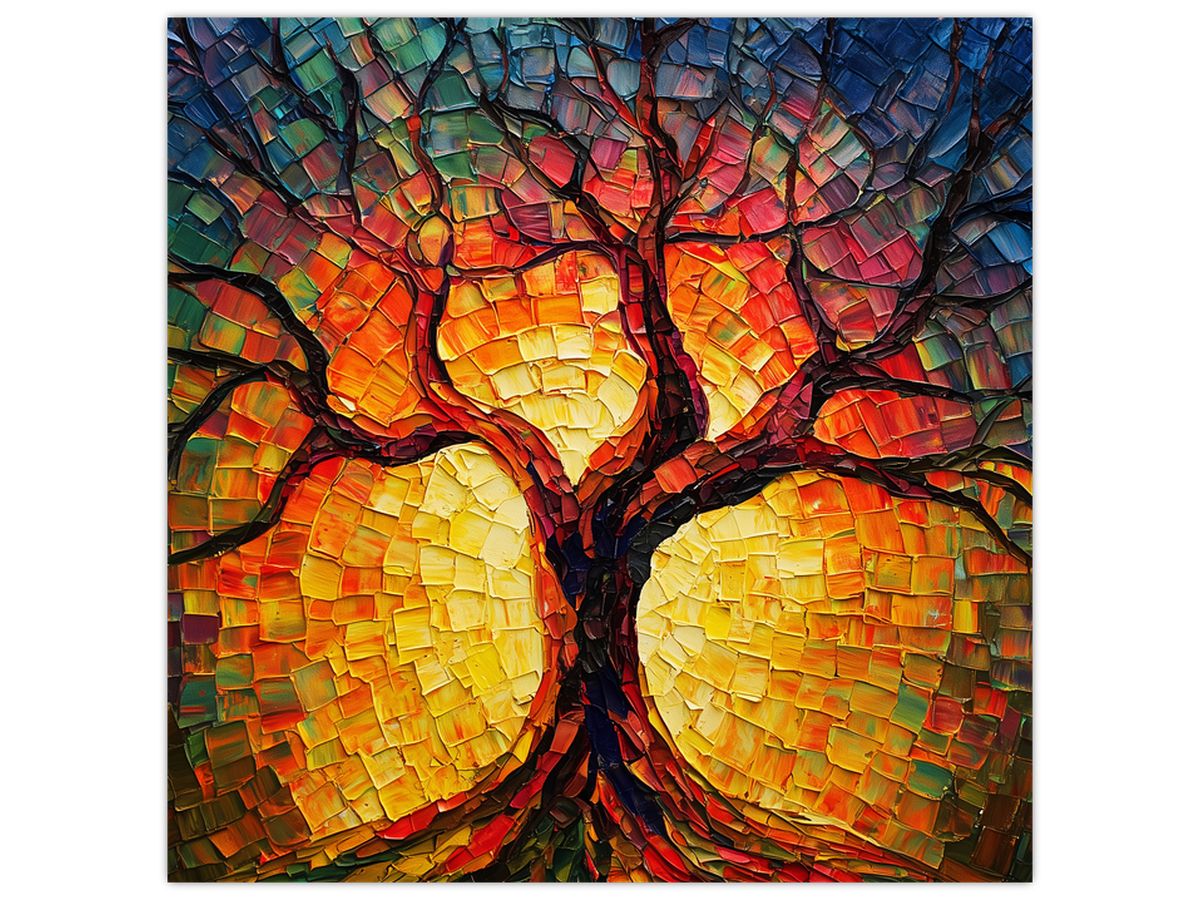 Glasschilderij - Levensboom in mozaïek