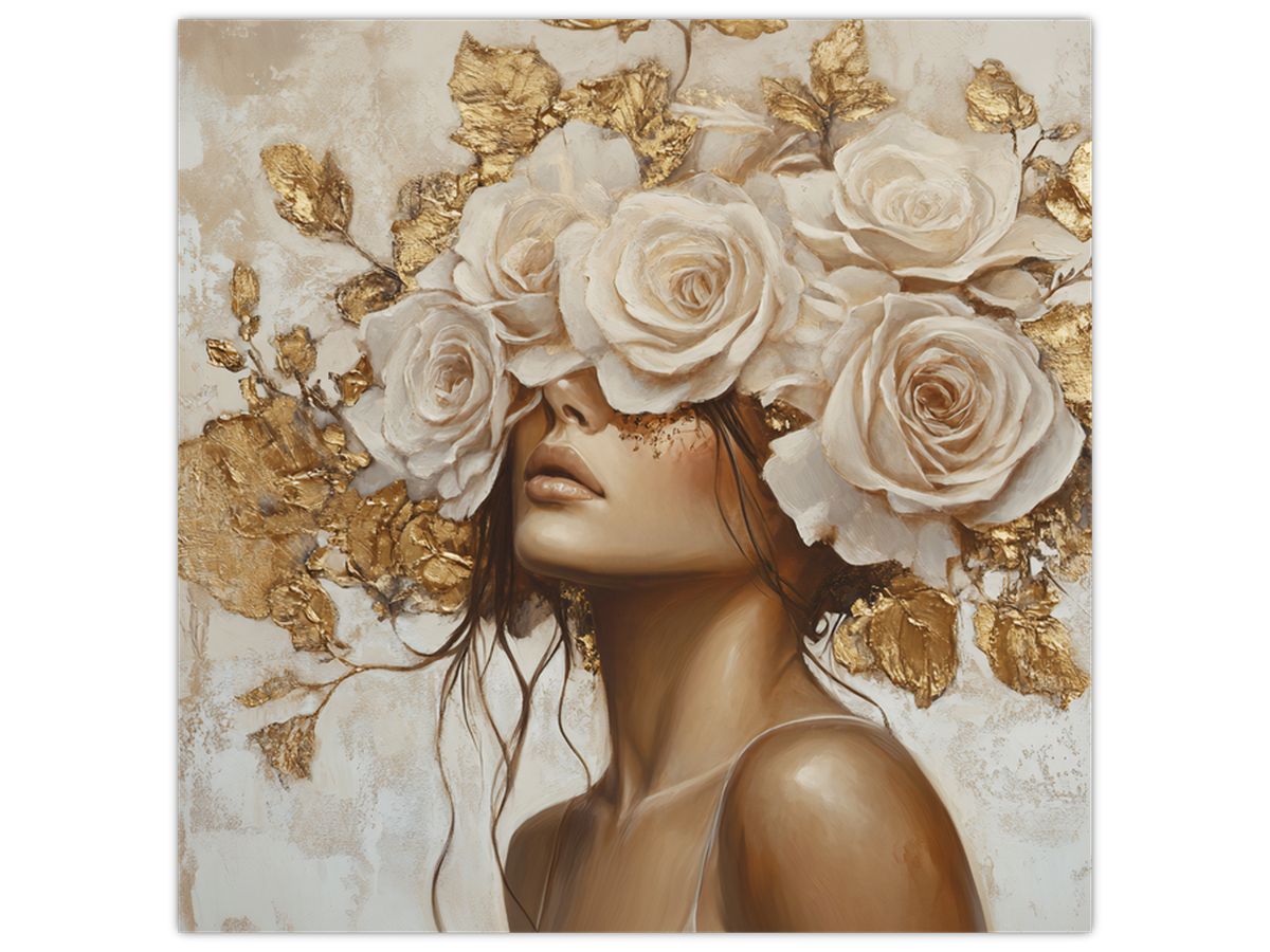 Glasschilderij - Meisje met rozen