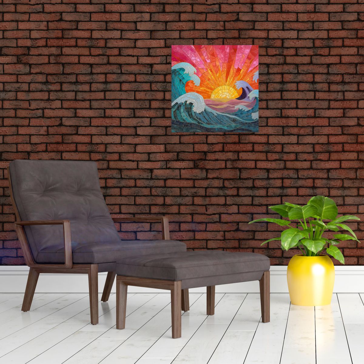 Glasschilderij - Mozaïek van golven