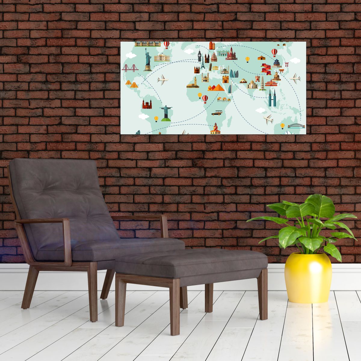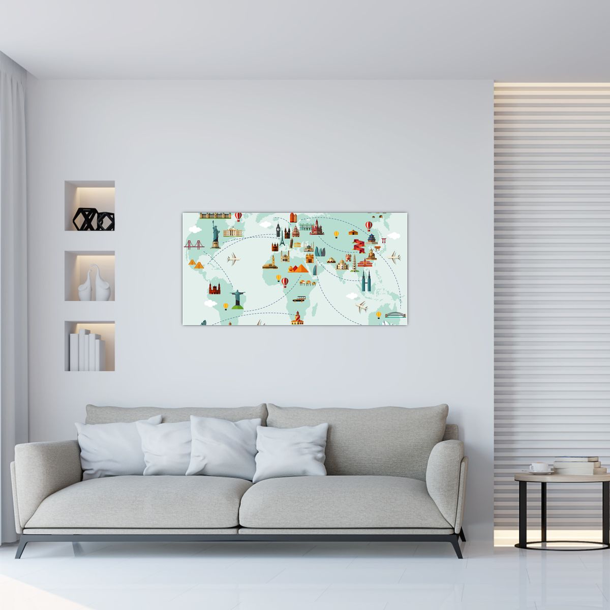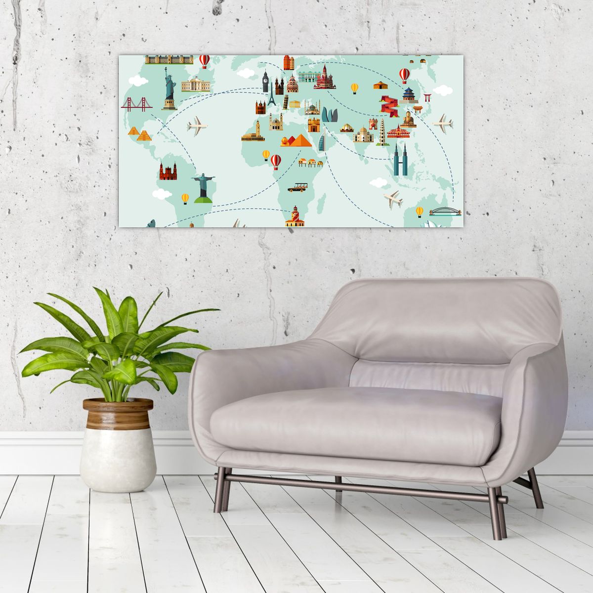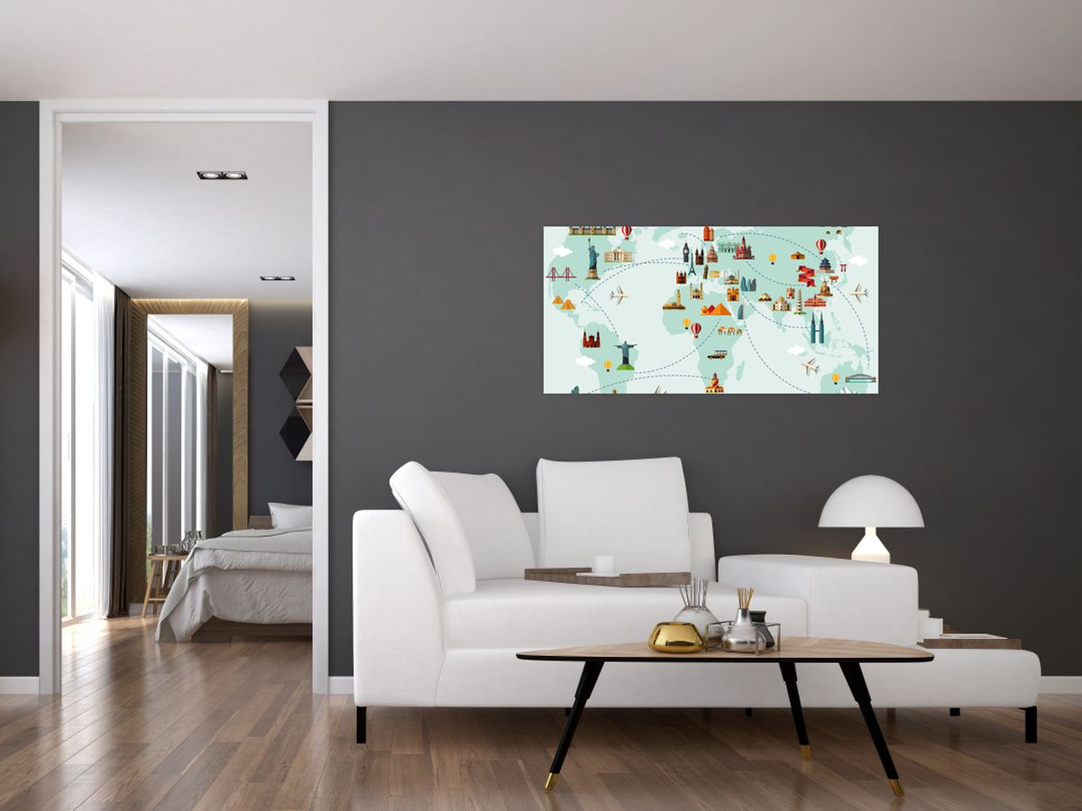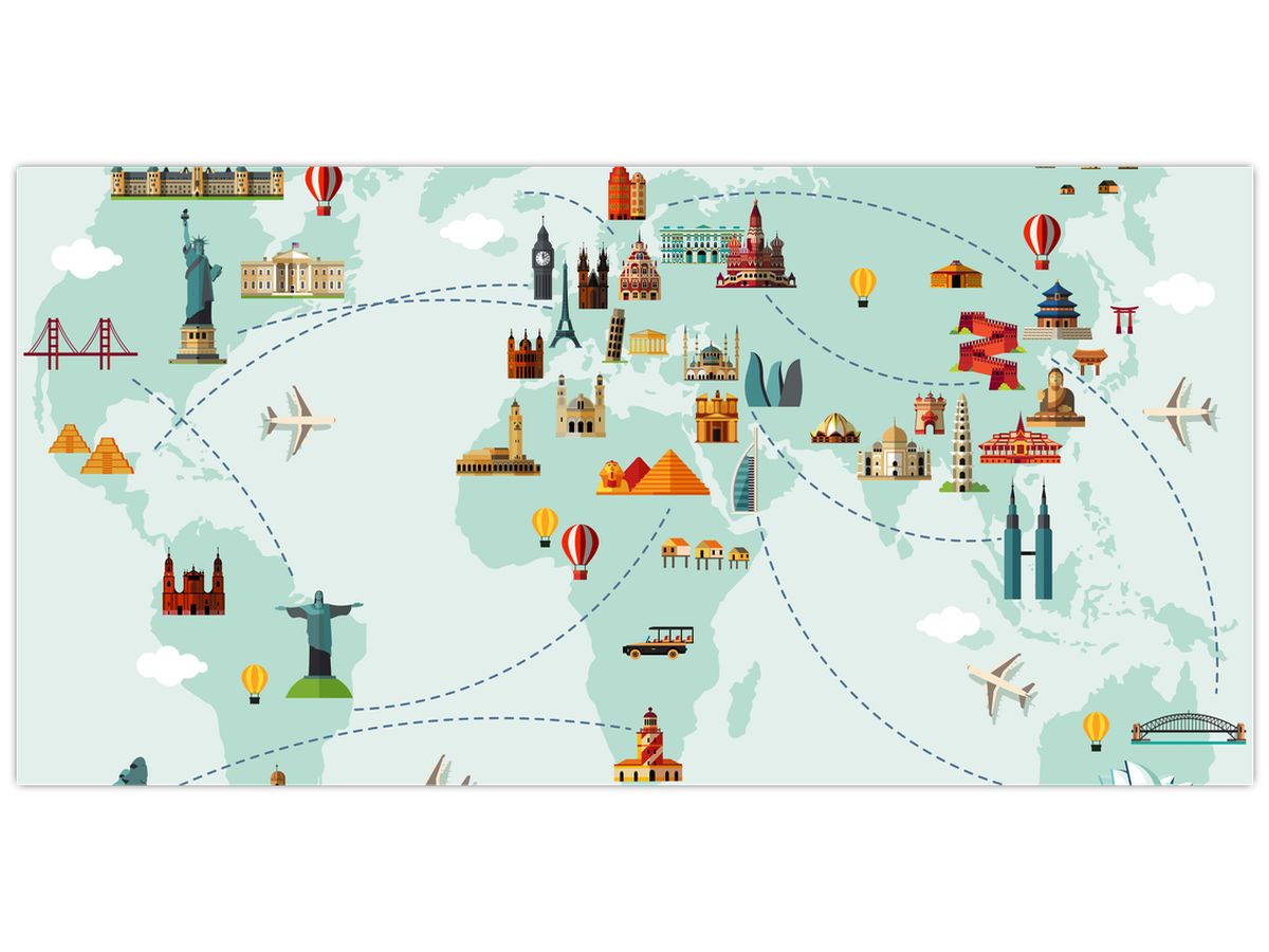 Glasschilderij - Reiskaart van de wereld