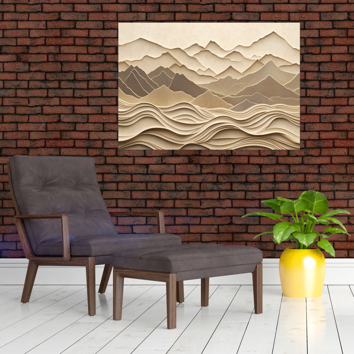 Schilderij - 3D berglijnen