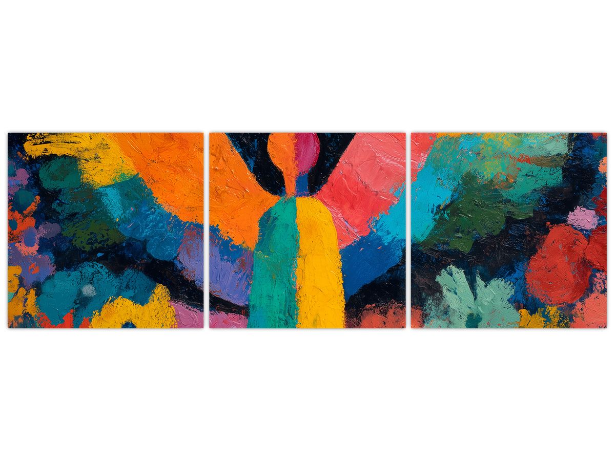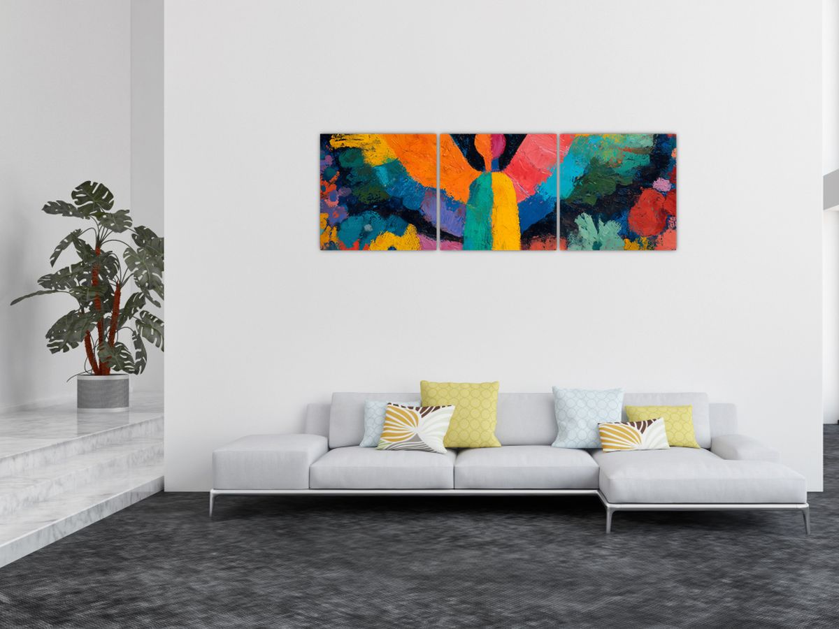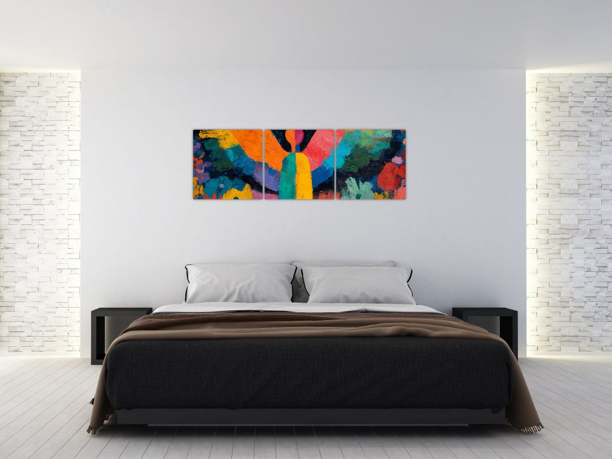 Schilderij - Abstracte engel met bloemen