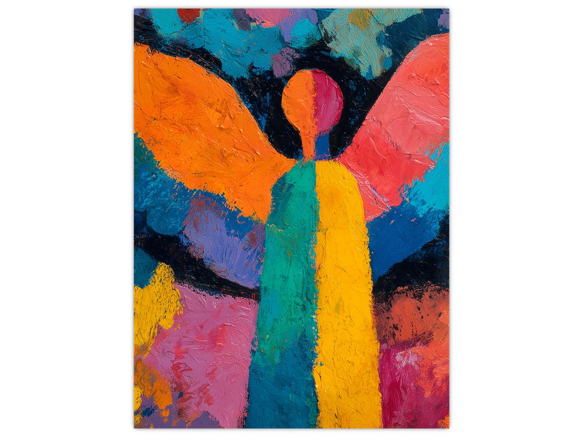 Schilderij - Abstracte engel met bloemen
