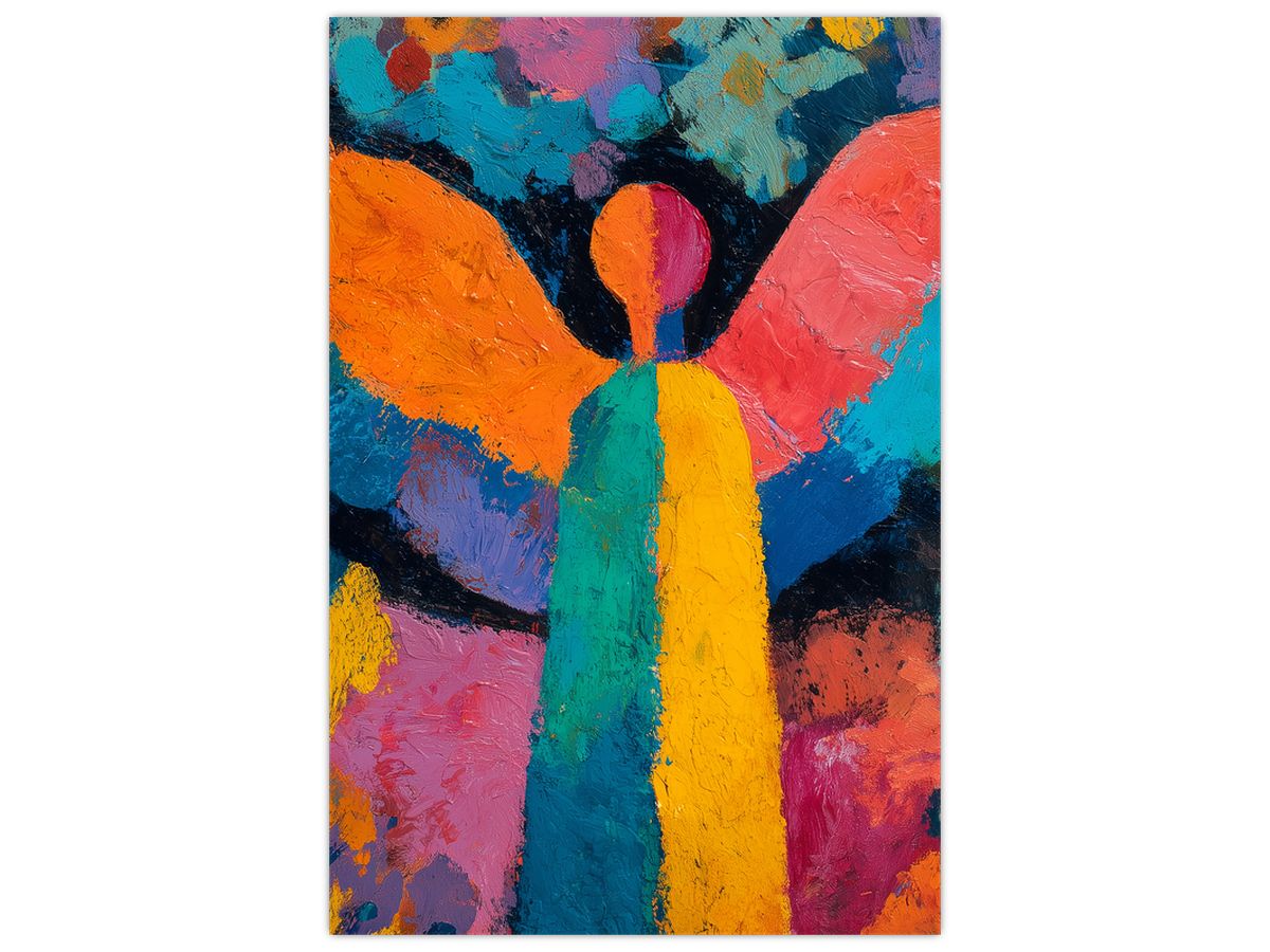 Schilderij - Abstracte engel met bloemen