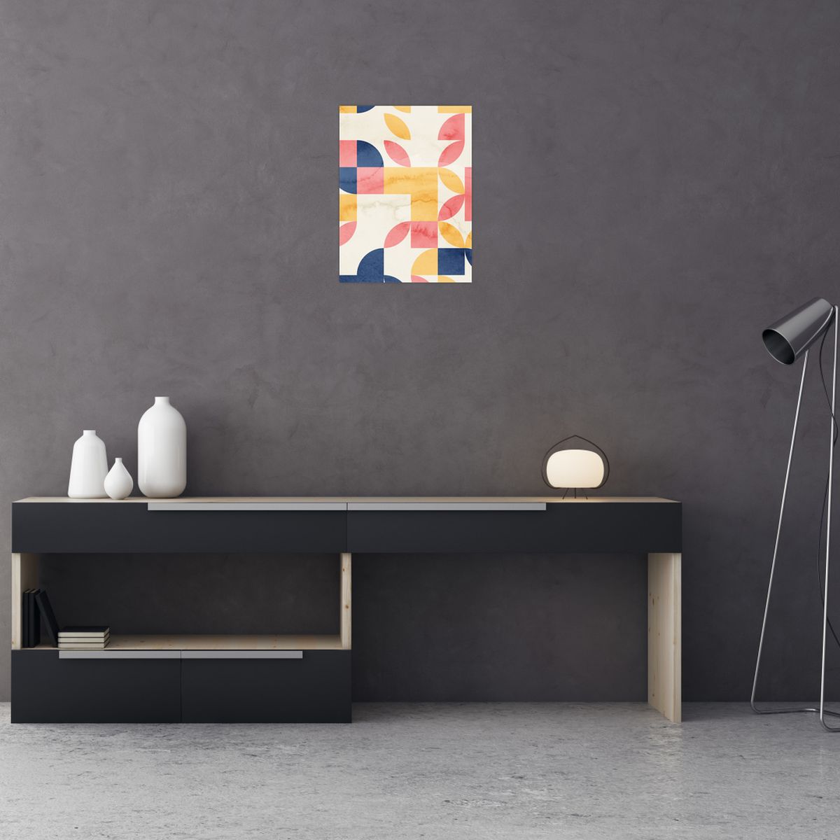 Schilderij - Abstractie met retro patronen