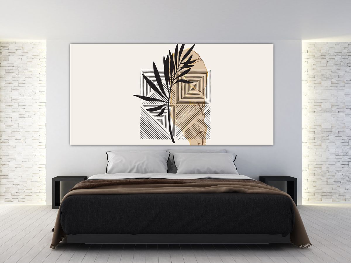 Schilderij - Abstractie met tropische bladeren N⁰1