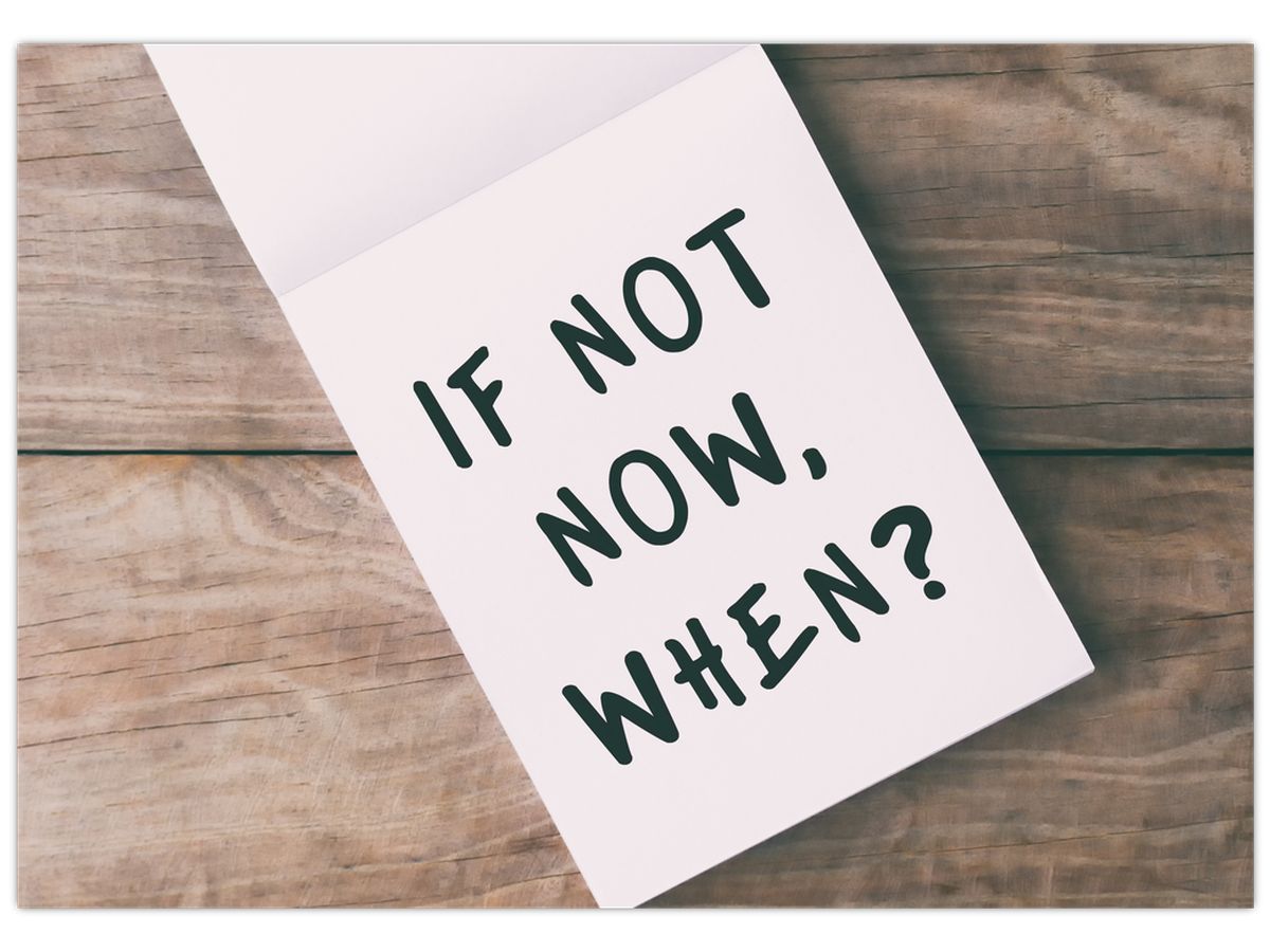 Schilderij - Als het niet nu is, wanneer dan wel?