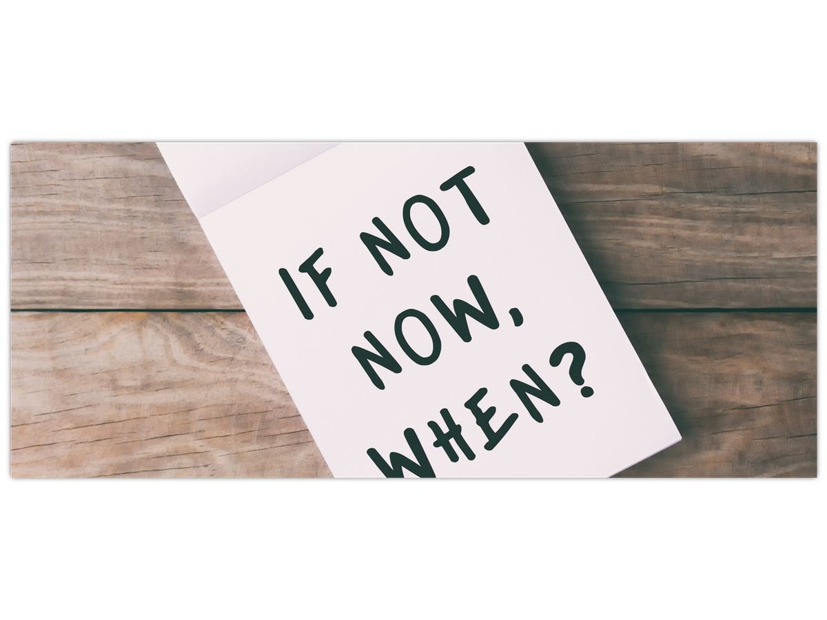 Schilderij - Als het niet nu is, wanneer dan wel?