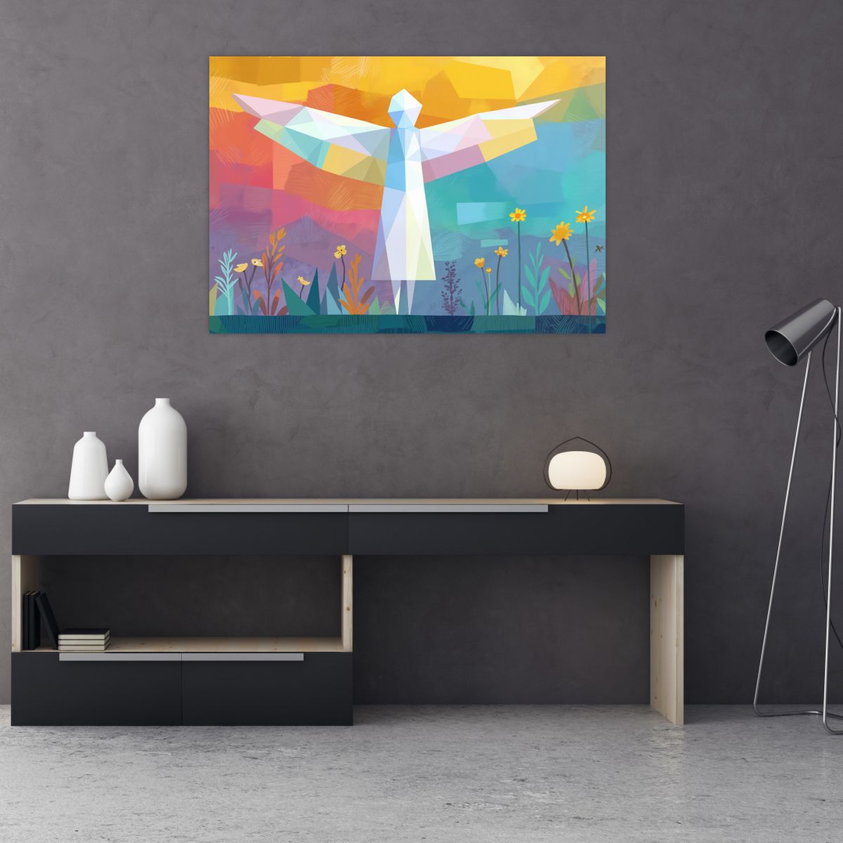 Schilderij - Beschermer van bloemen