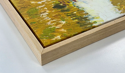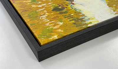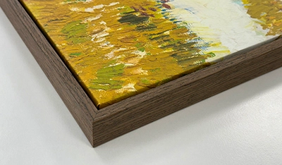 Breng je schilderij in harmonie met je interieur en geef het een elegante uitstraling. Onze exclusieve houten lijsten met een matte afwerking geven je schilderij diepte en een professionele uitstraling. Dankzij de 5 mm tussenruimte tussen de lijst en het canvas ontstaat het effect van een „zwevend“ schilderij, waarbij de randen en structuur extra worden benadrukt.