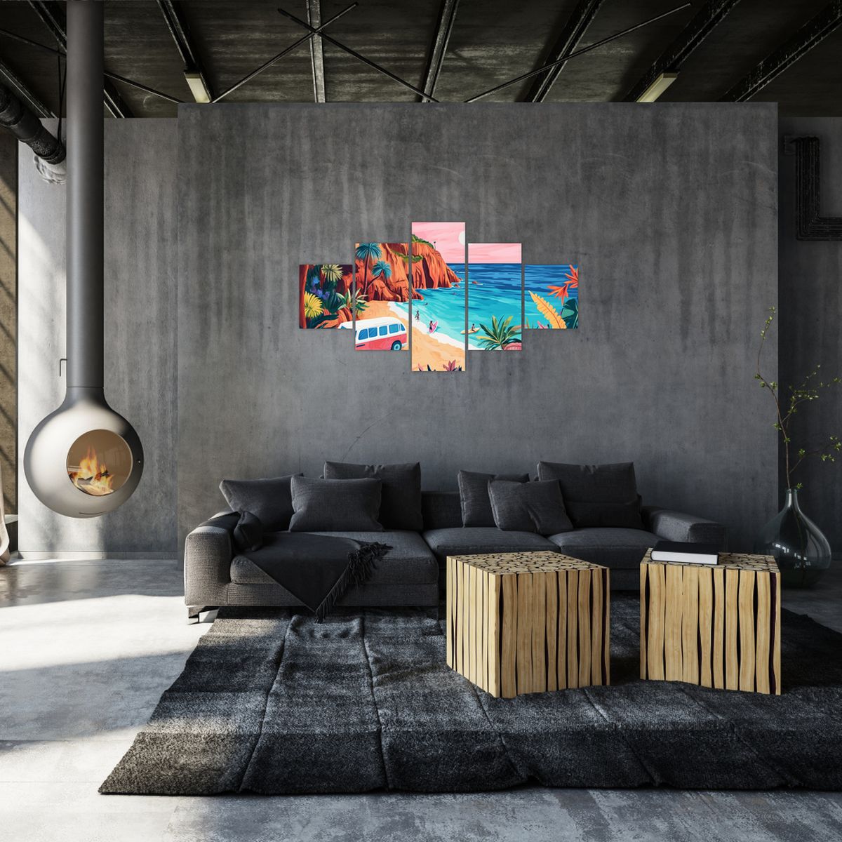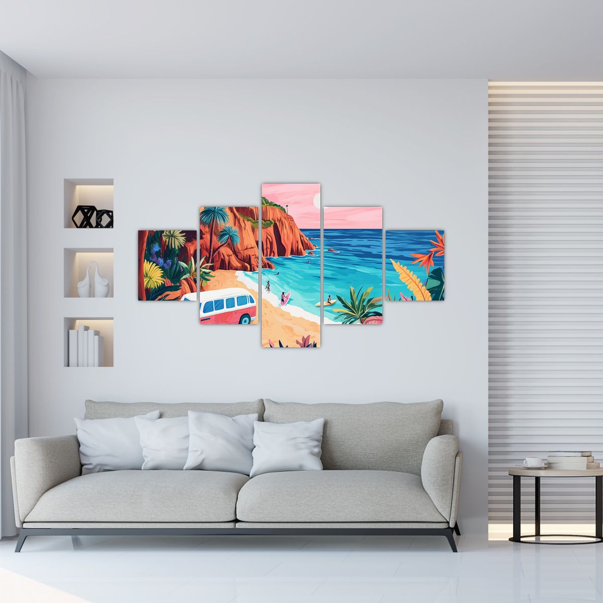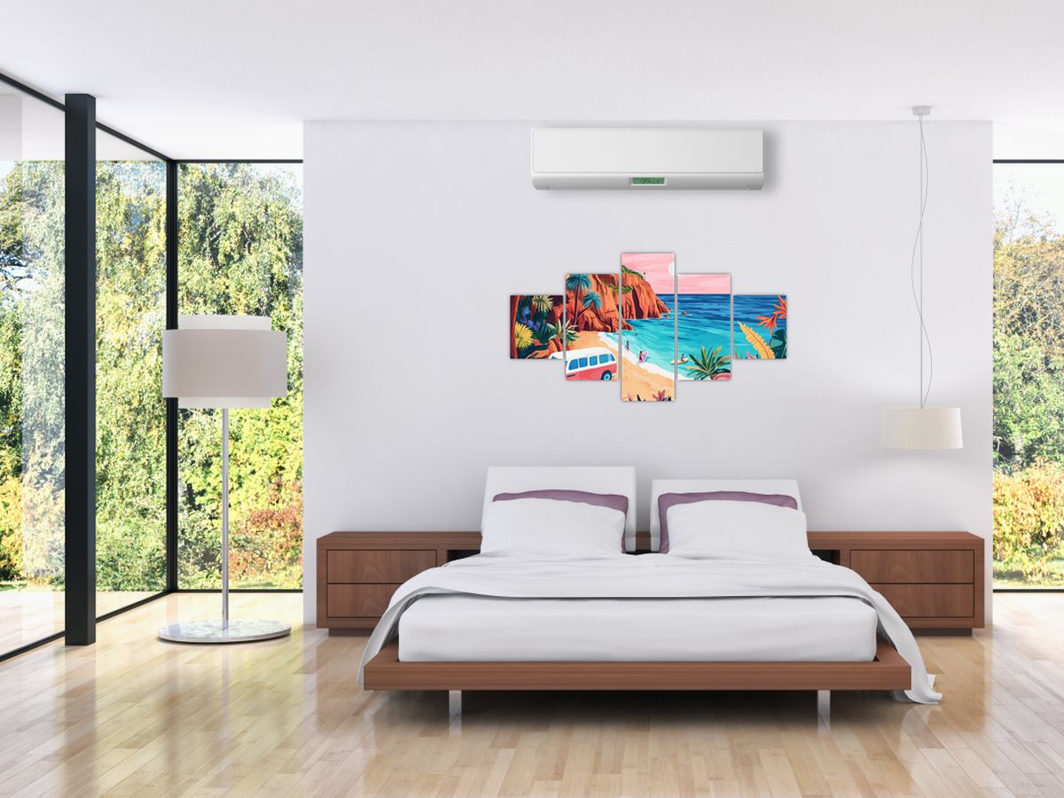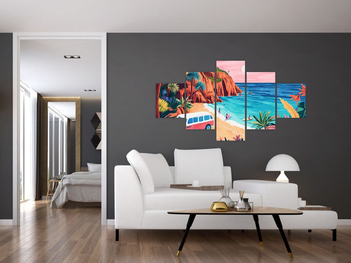 Schilderij - Caravan bij de oceaan