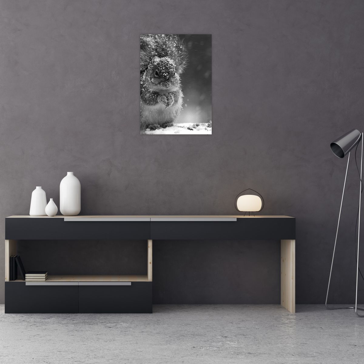 Schilderij - Eekhoorn in de winter