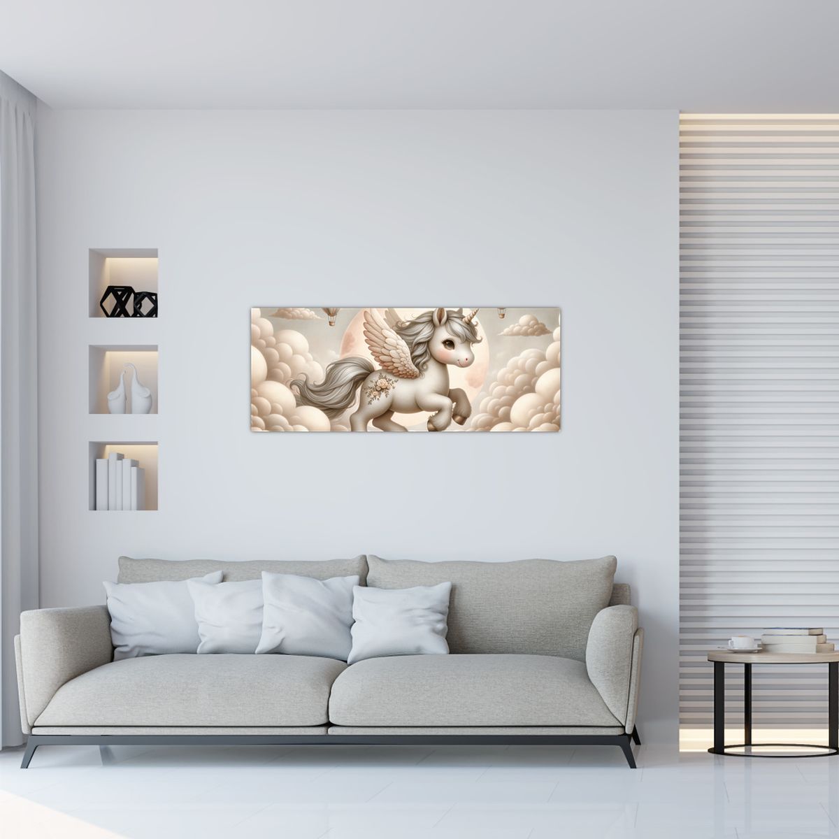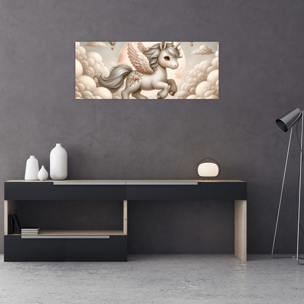 Schilderij - Eenhoorn in de wolken