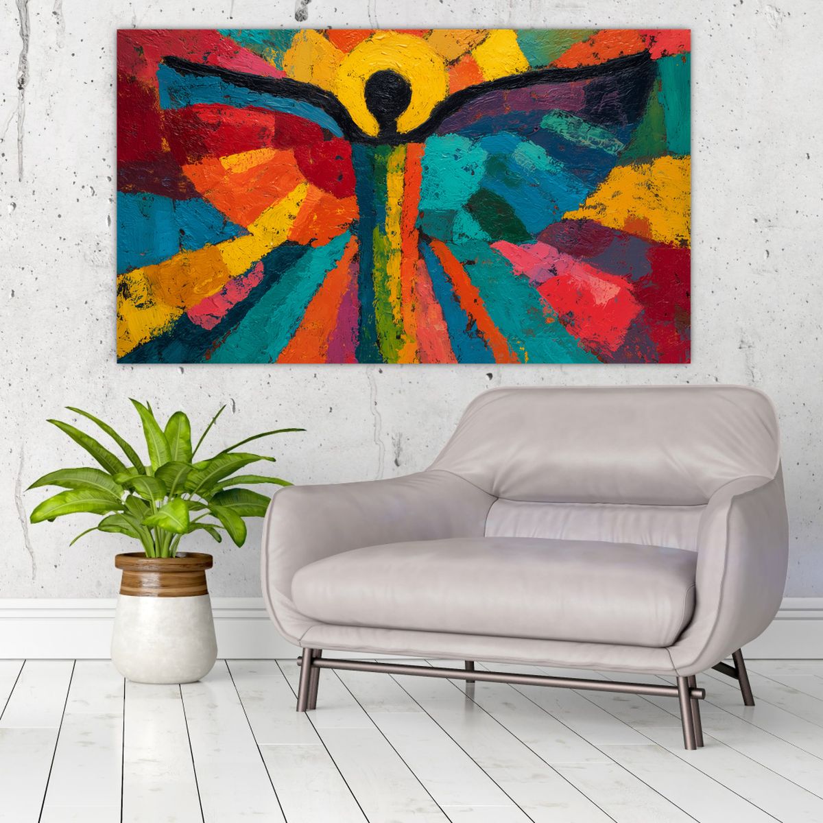 Schilderij - Geschilderde engel