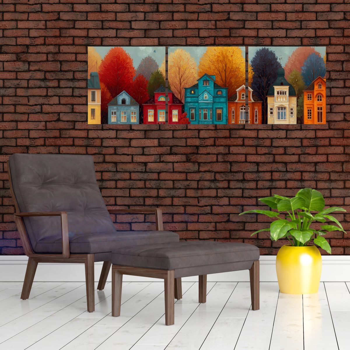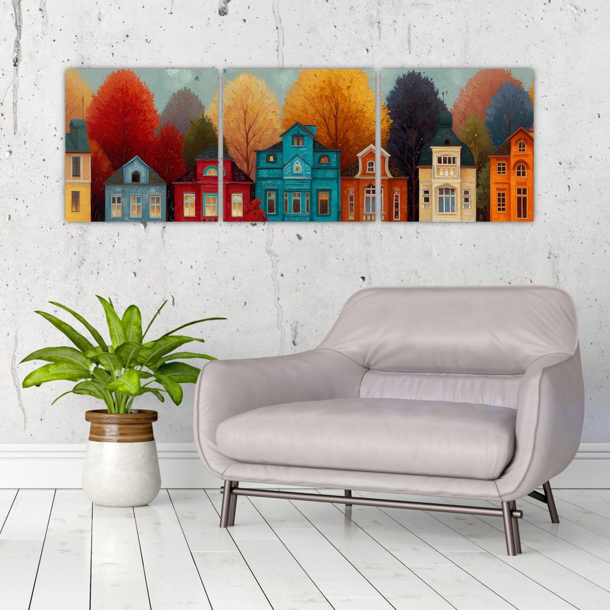Schilderij - Geschilderde herfststad