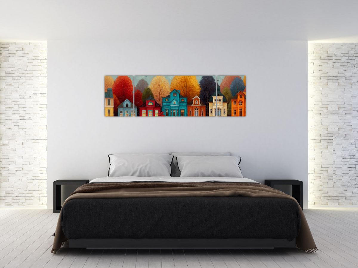 Schilderij - Geschilderde herfststad