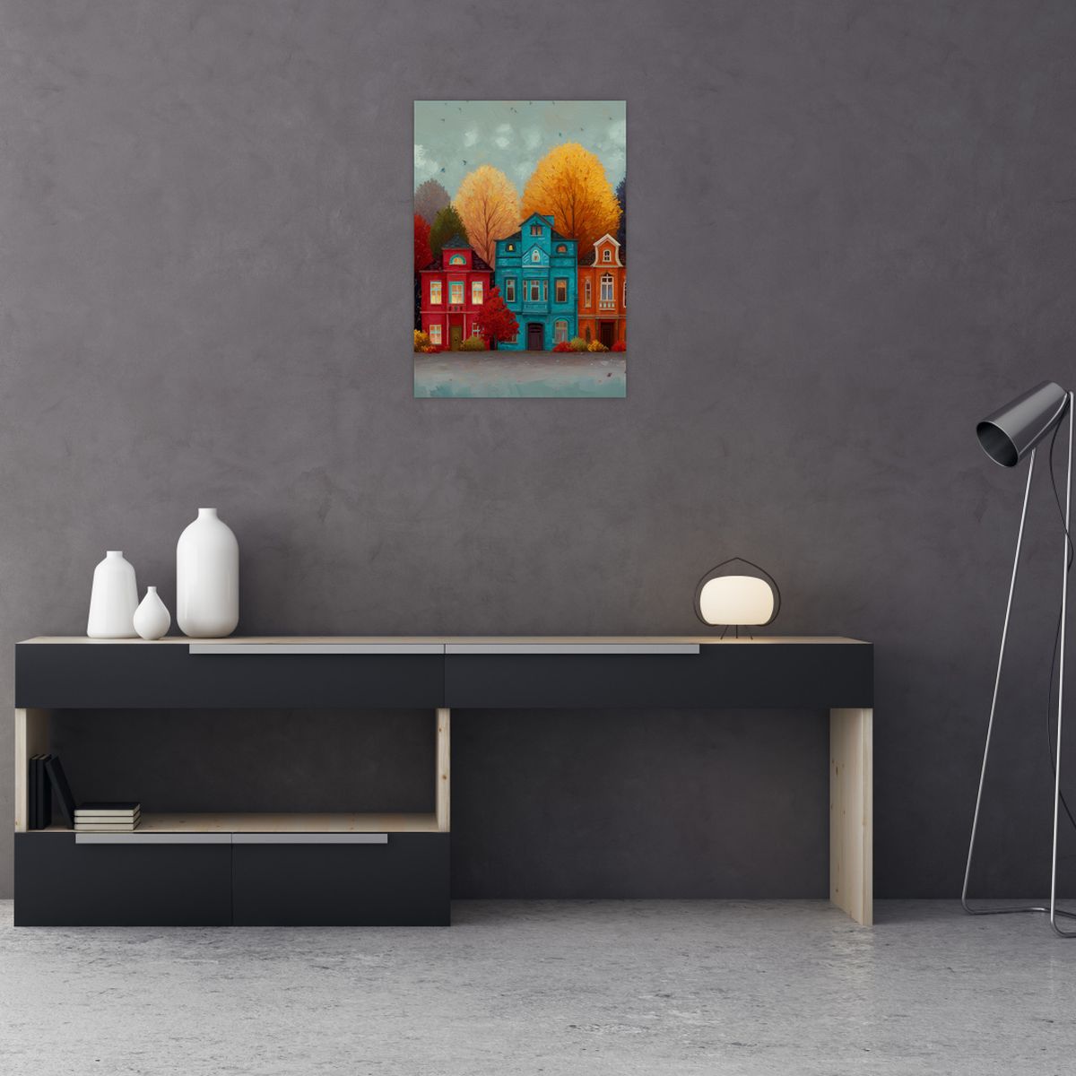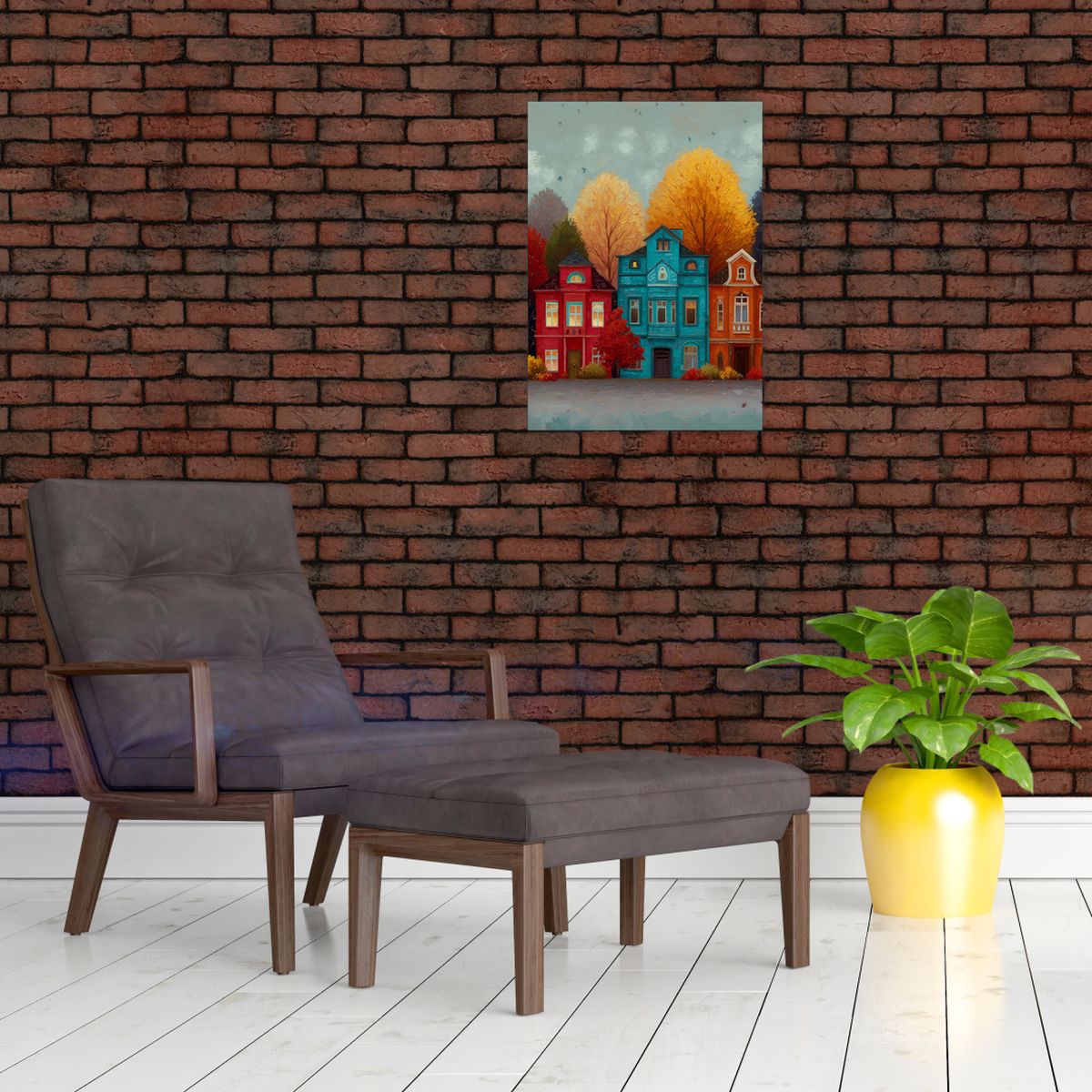 Schilderij - Geschilderde herfststad