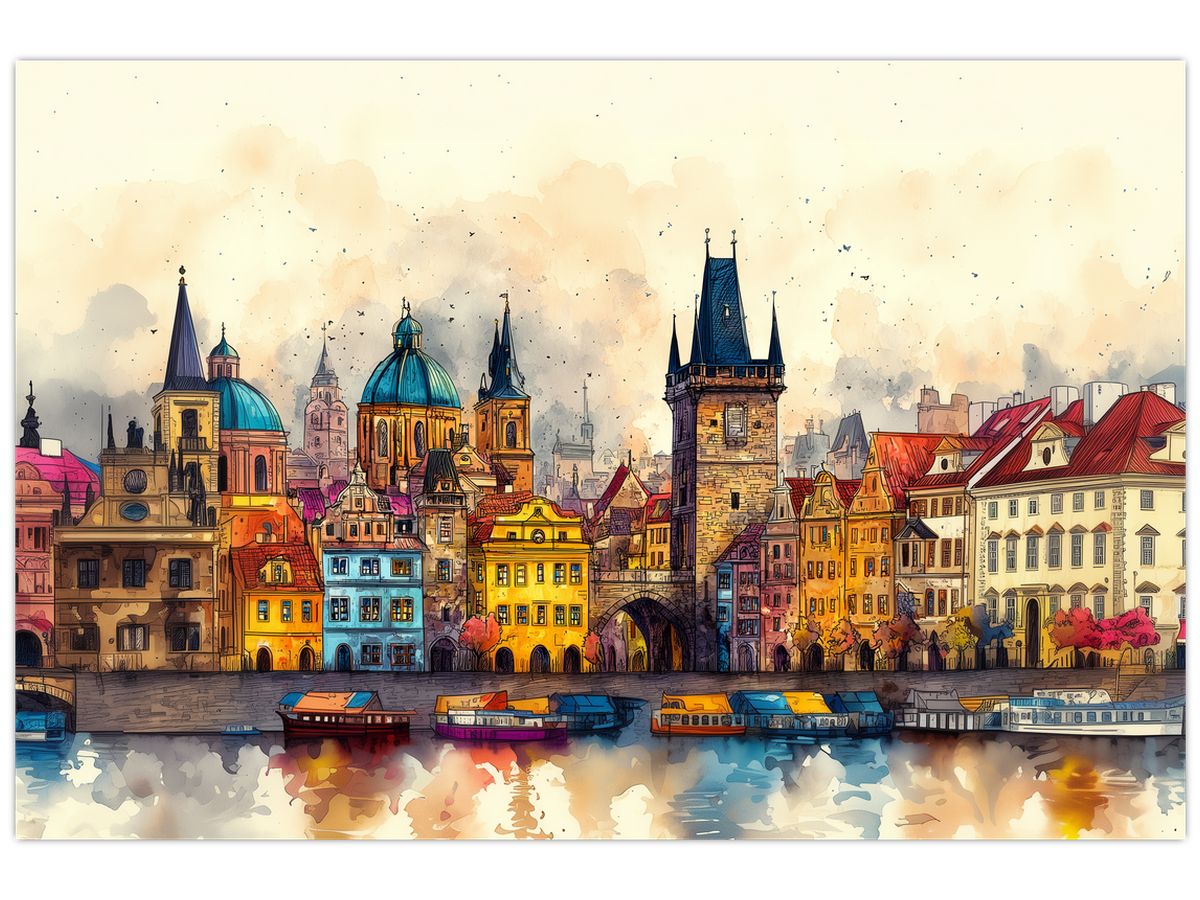 Schilderij - Herfst in de geschilderde stad