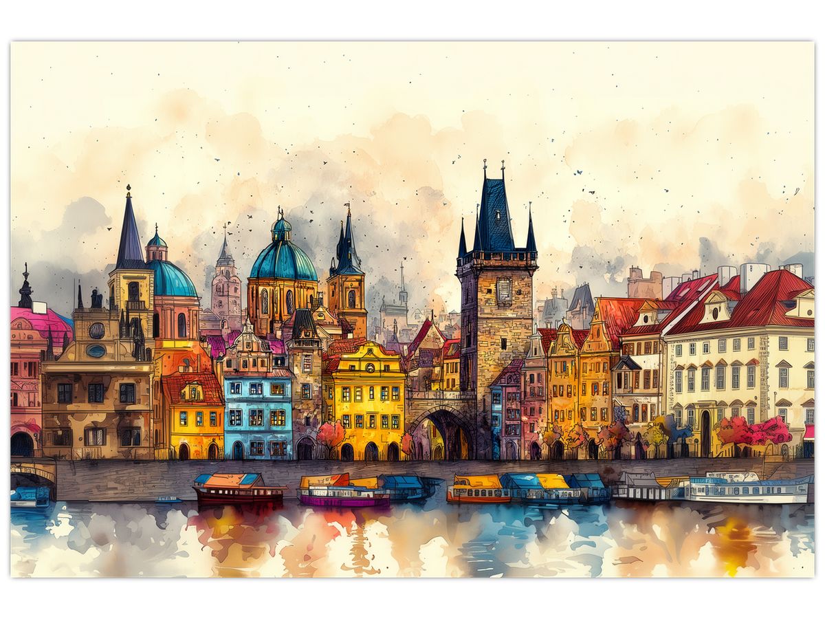 Schilderij - Herfst in de geschilderde stad