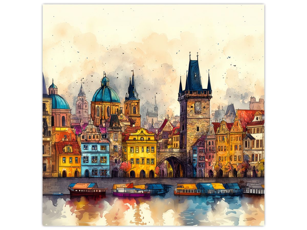 Schilderij - Herfst in de geschilderde stad