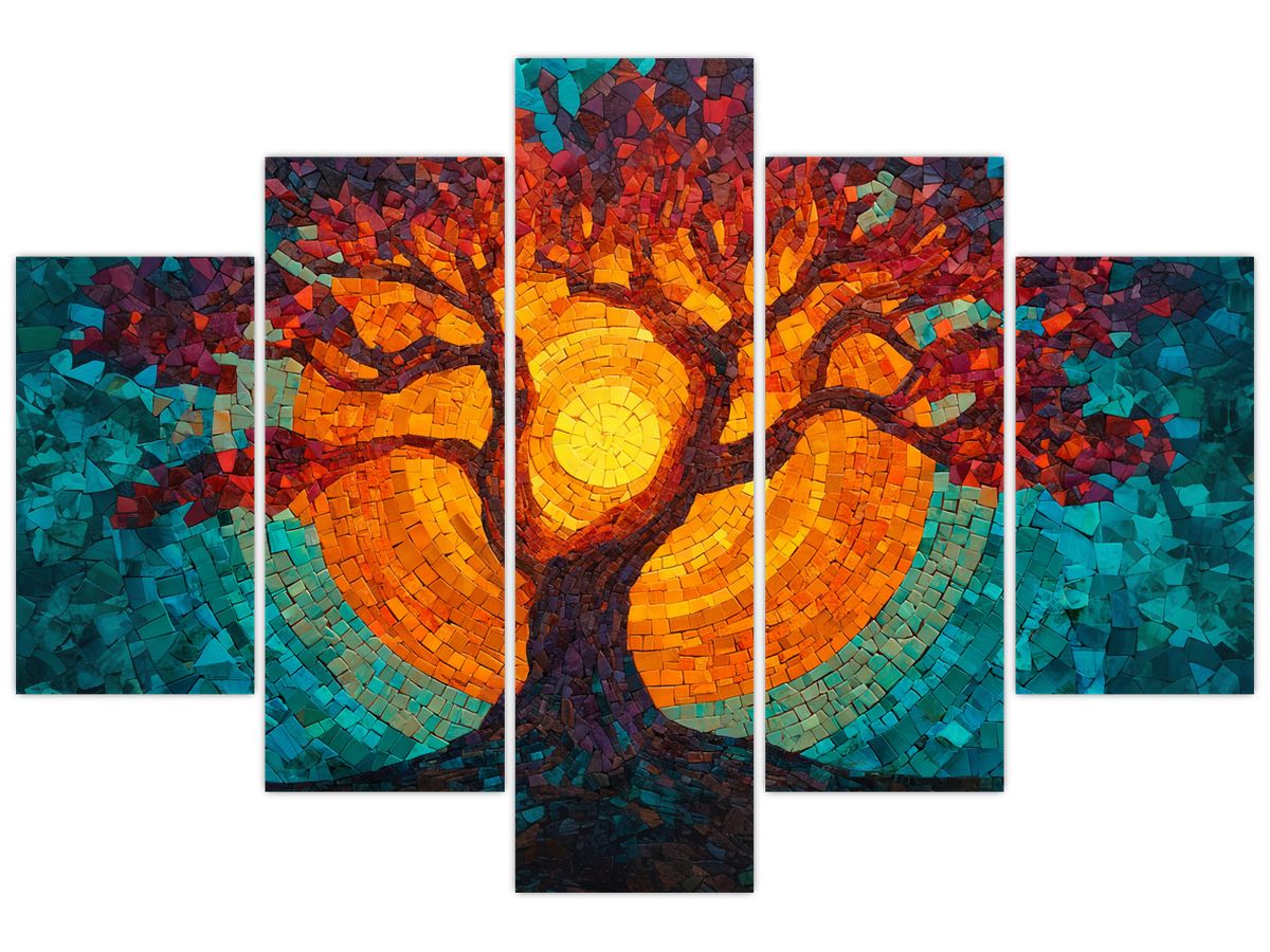 Schilderij - Levensboom en zon in mozaïek