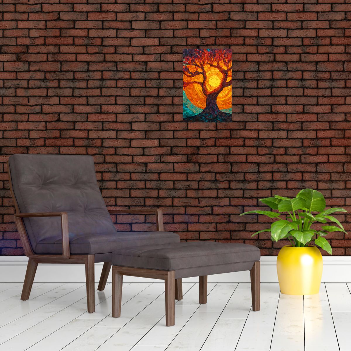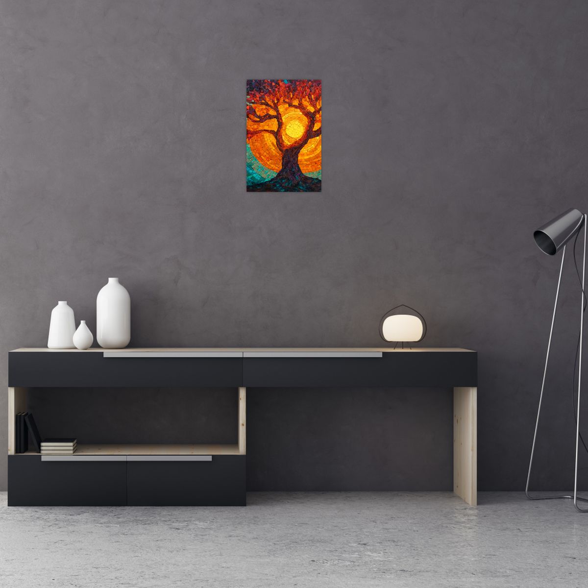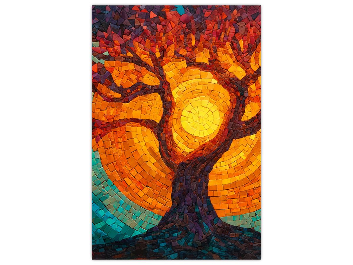 Schilderij - Levensboom en zon in mozaïek