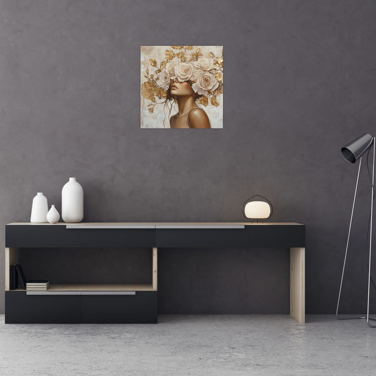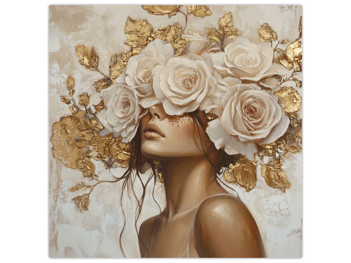 Schilderij - Meisje met rozen
