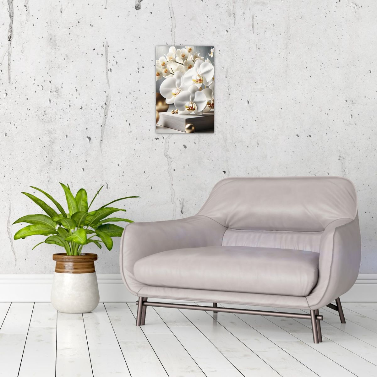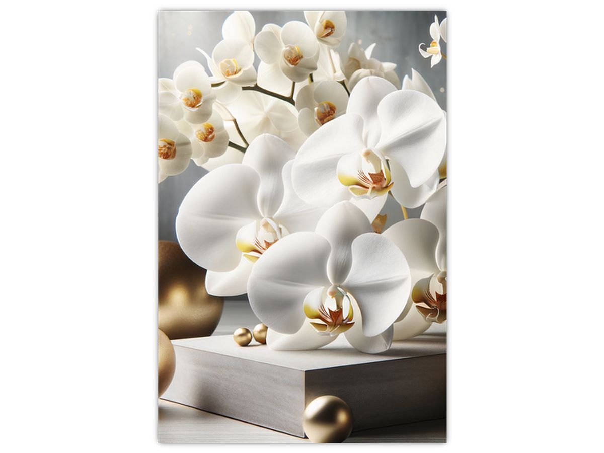 Schilderij - Orchidee en gouden ballen
