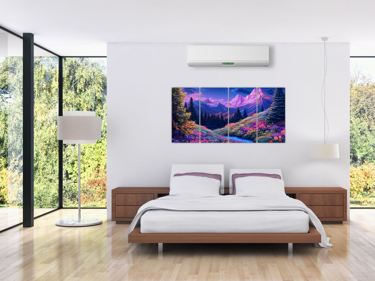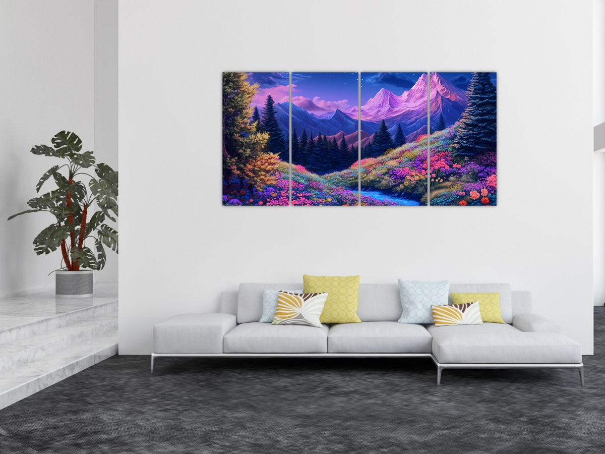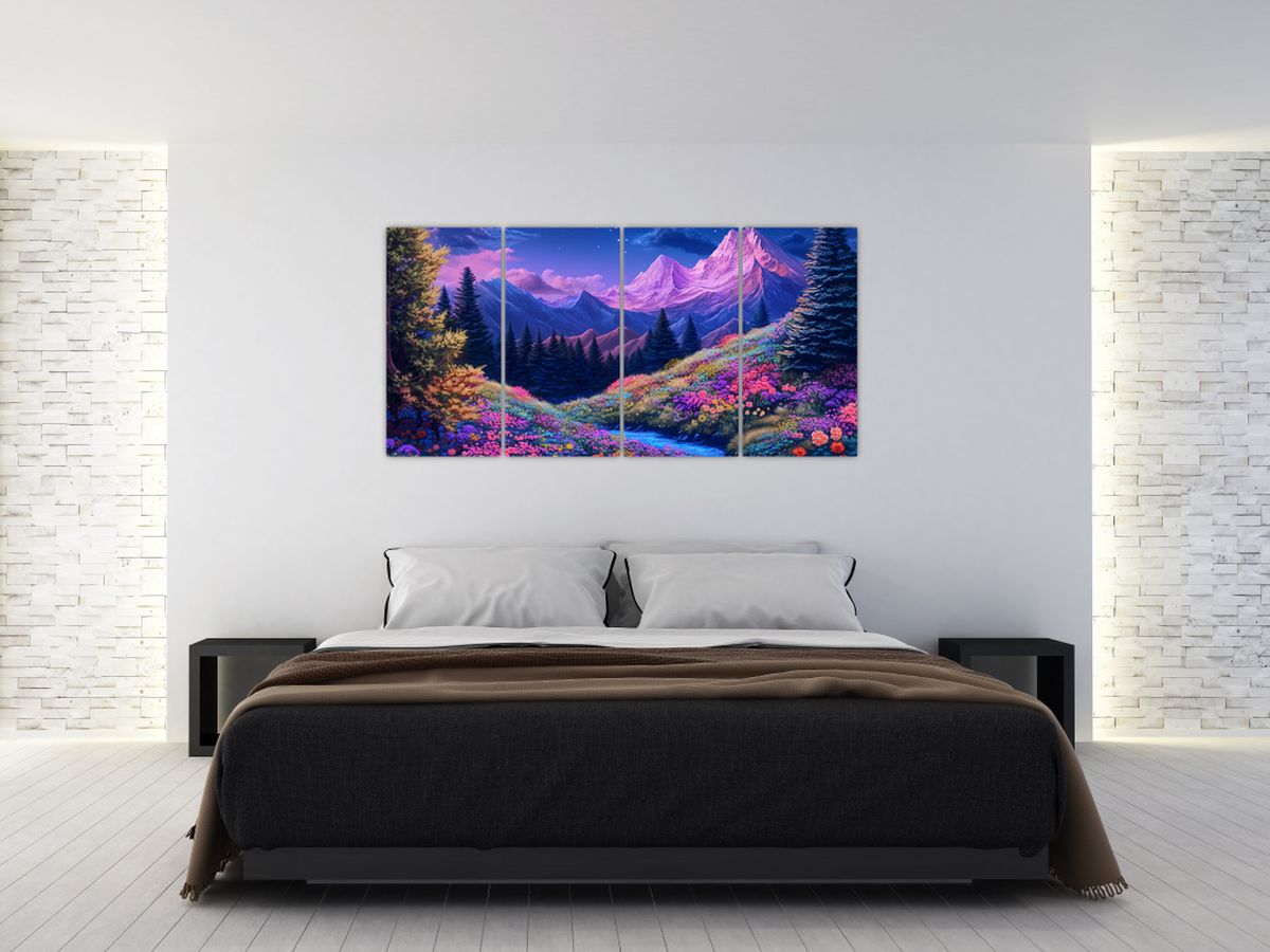 Schilderij - Paarse landschap bij volle maan