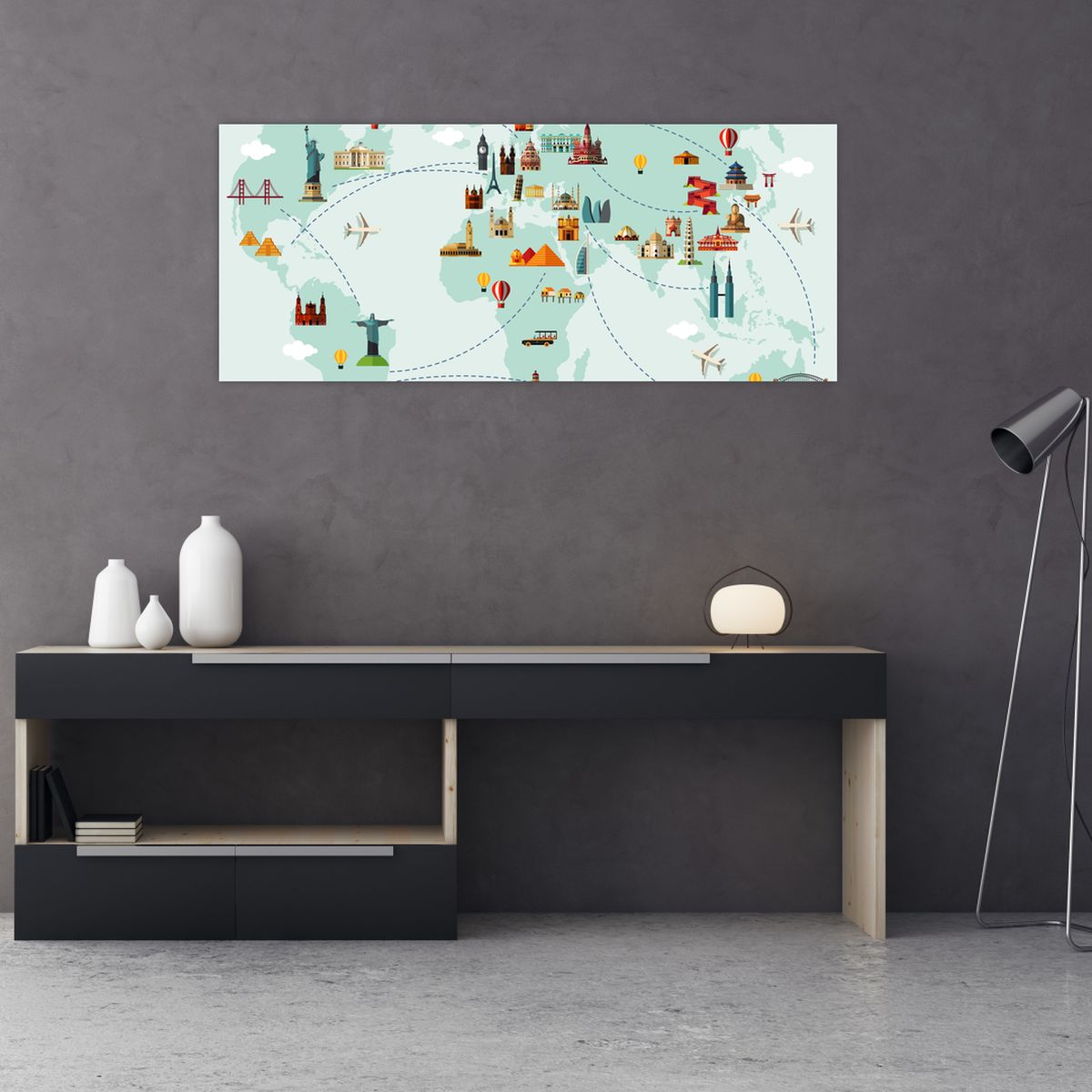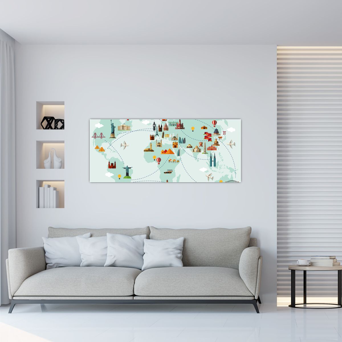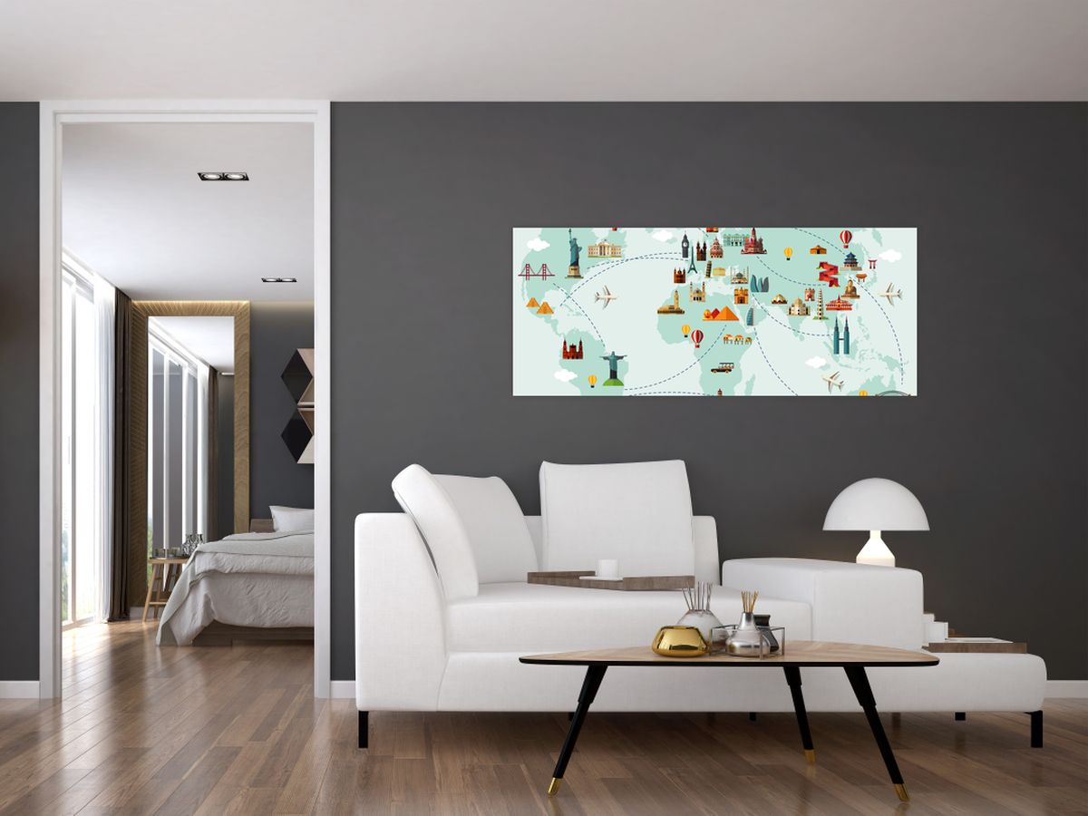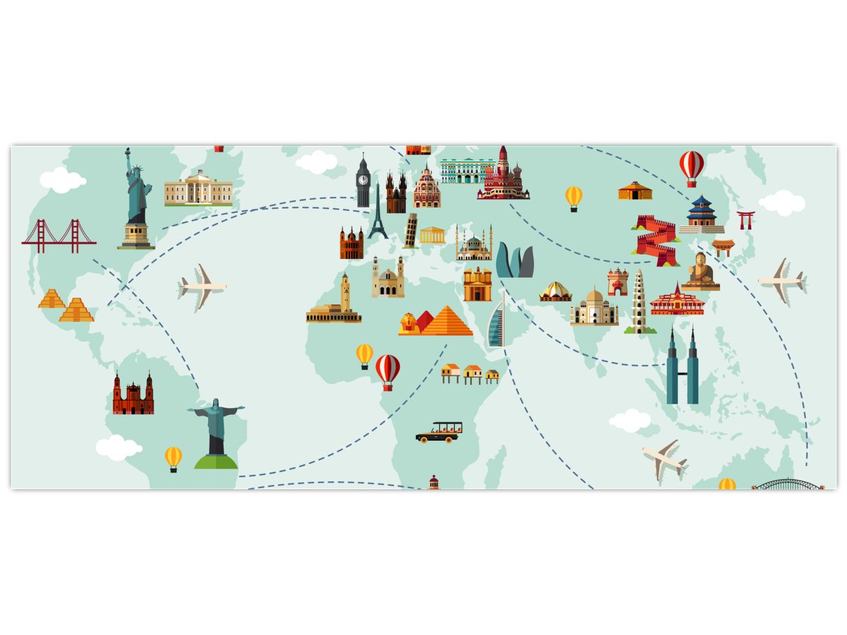 Schilderij - Reiskaart van de wereld