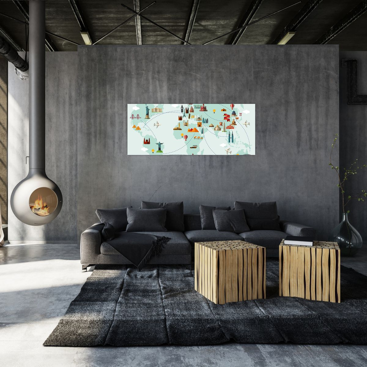 Schilderij - Reiskaart van de wereld