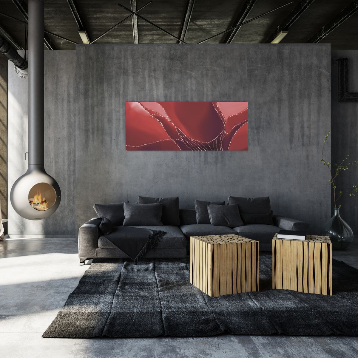 Schilderij - Rode abstracte bloem N⁰2