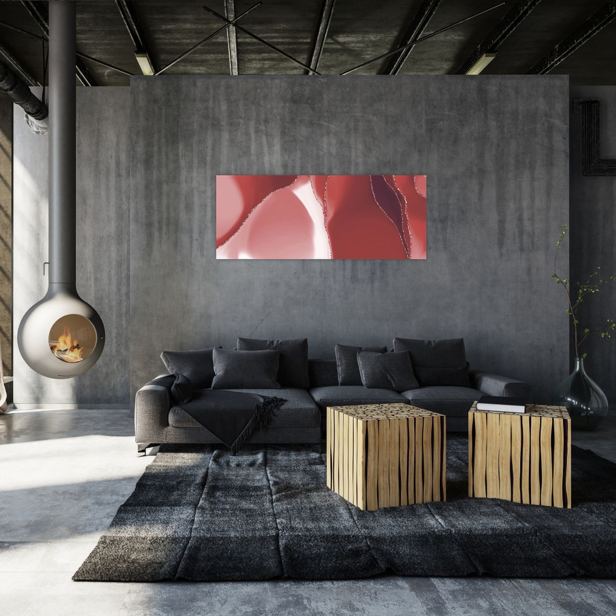 Schilderij - Rode abstracte bloem N⁰3