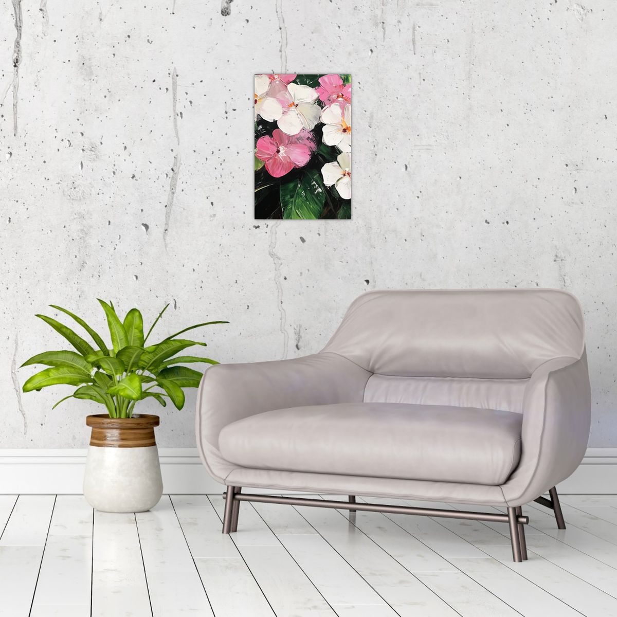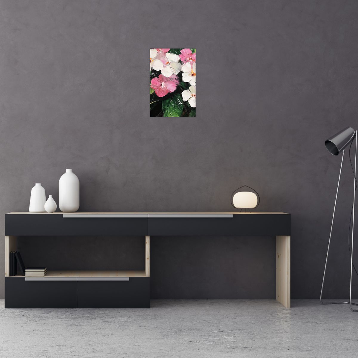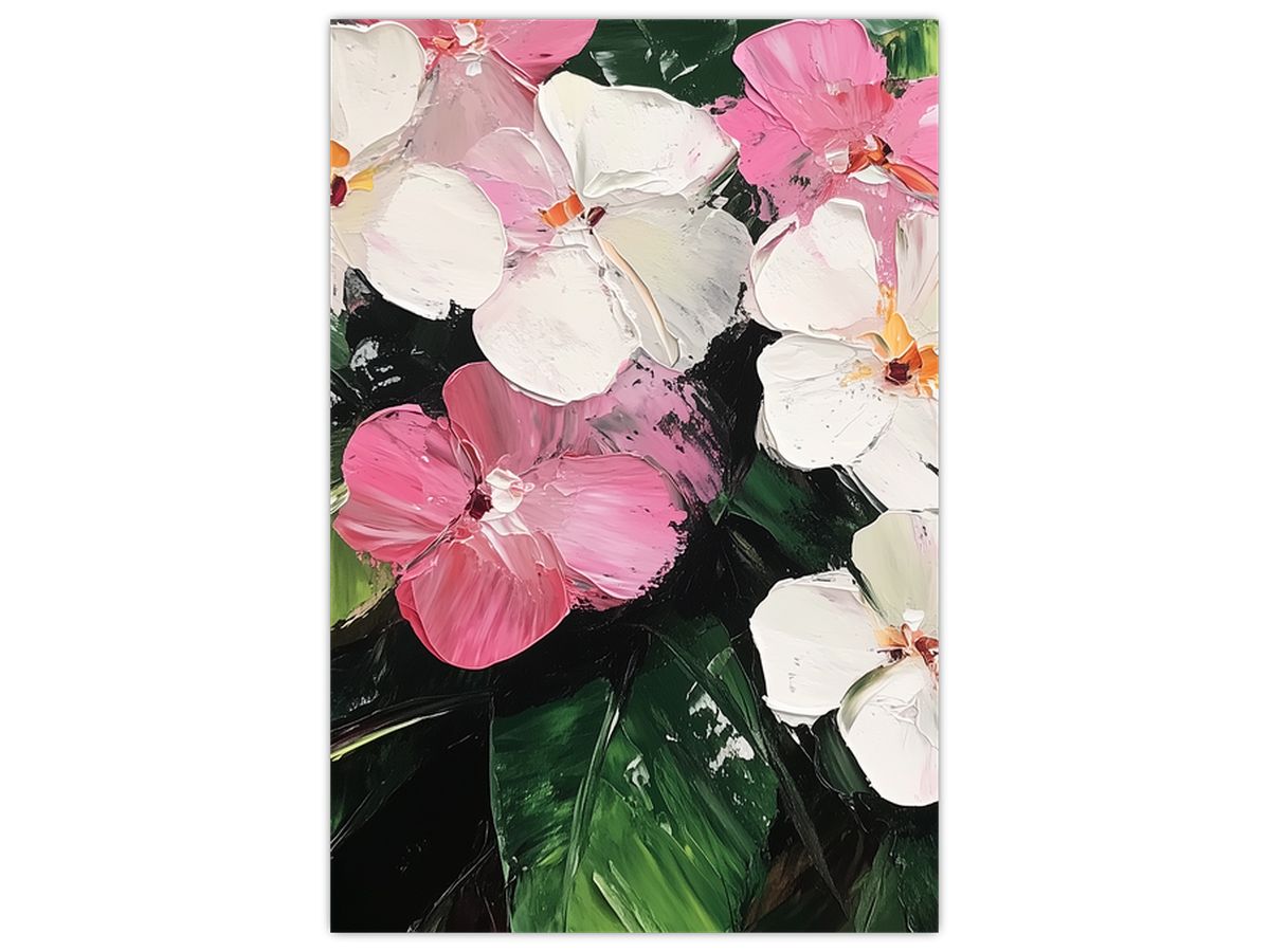 Schilderij - Roze en witte bloemen