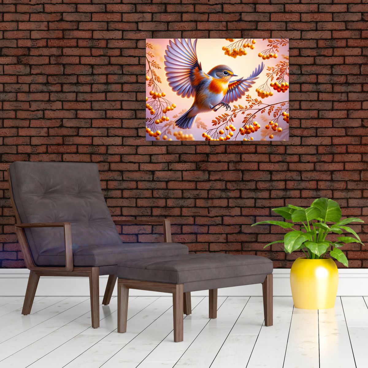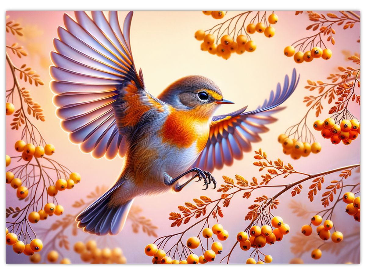 Schilderij - Vogel met lijsterbes