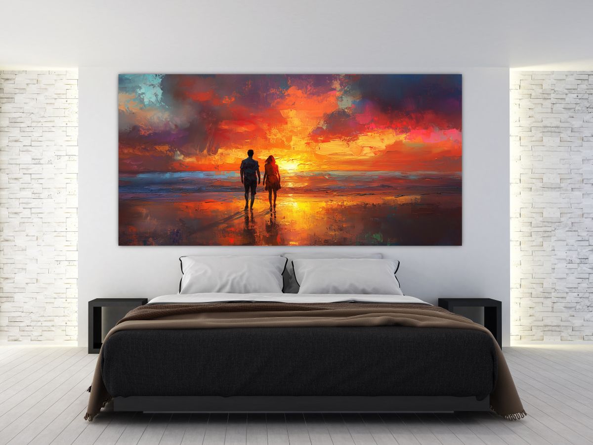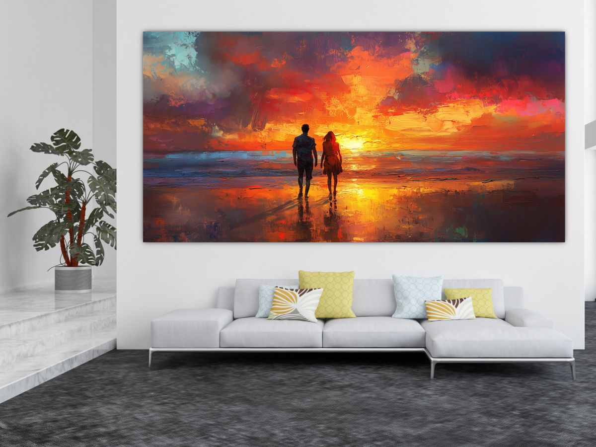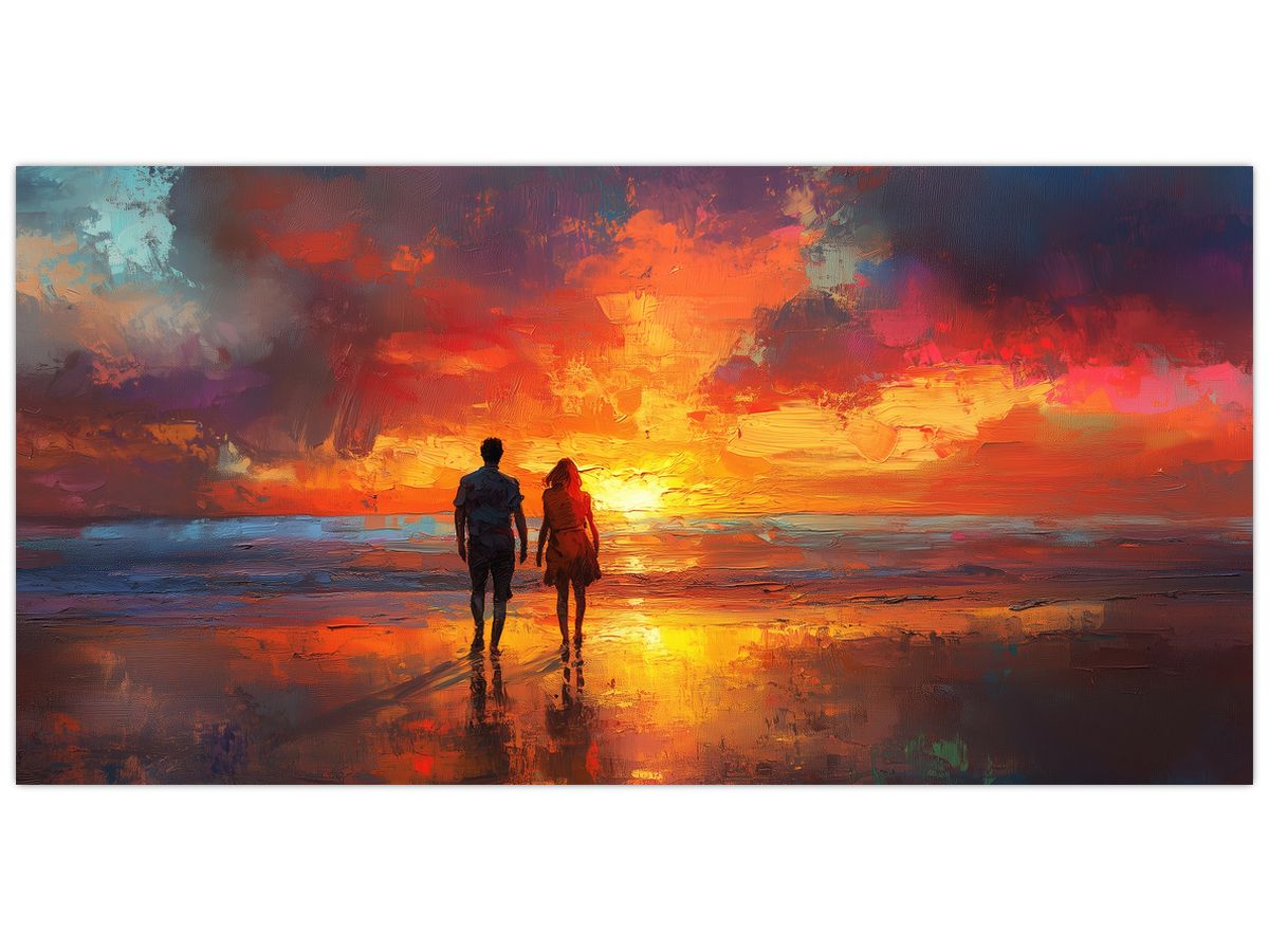 Schilderij - Wandeling op het strand